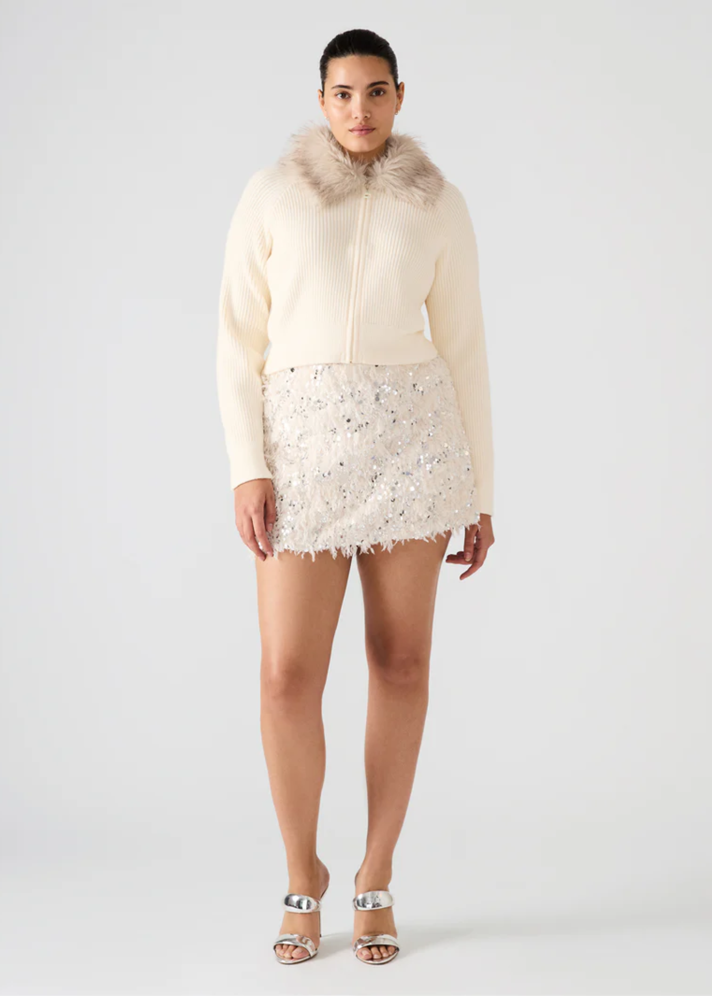 Elevate your evening style with the CINDI FEATHER SKIRT. This skirt features shimmering sequin embellishments arranged with dynamic feather detailing, adding movement and a bold statement to your look. Designed as part of a matching set, it offers a coordinated fashion-forward ensemble perfect for special occasions or nights out. The skirt’s luxurious finish and fluidity create eye-catching flair while maintaining effortless wearability.