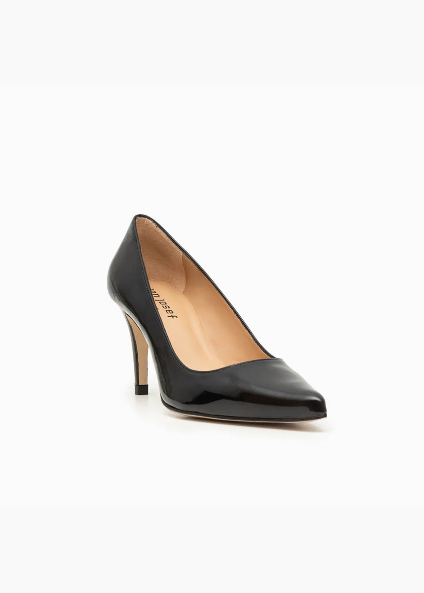 The next generation Paris pointed toe black suede pump has an all-new straight heel for elegance and comfort.