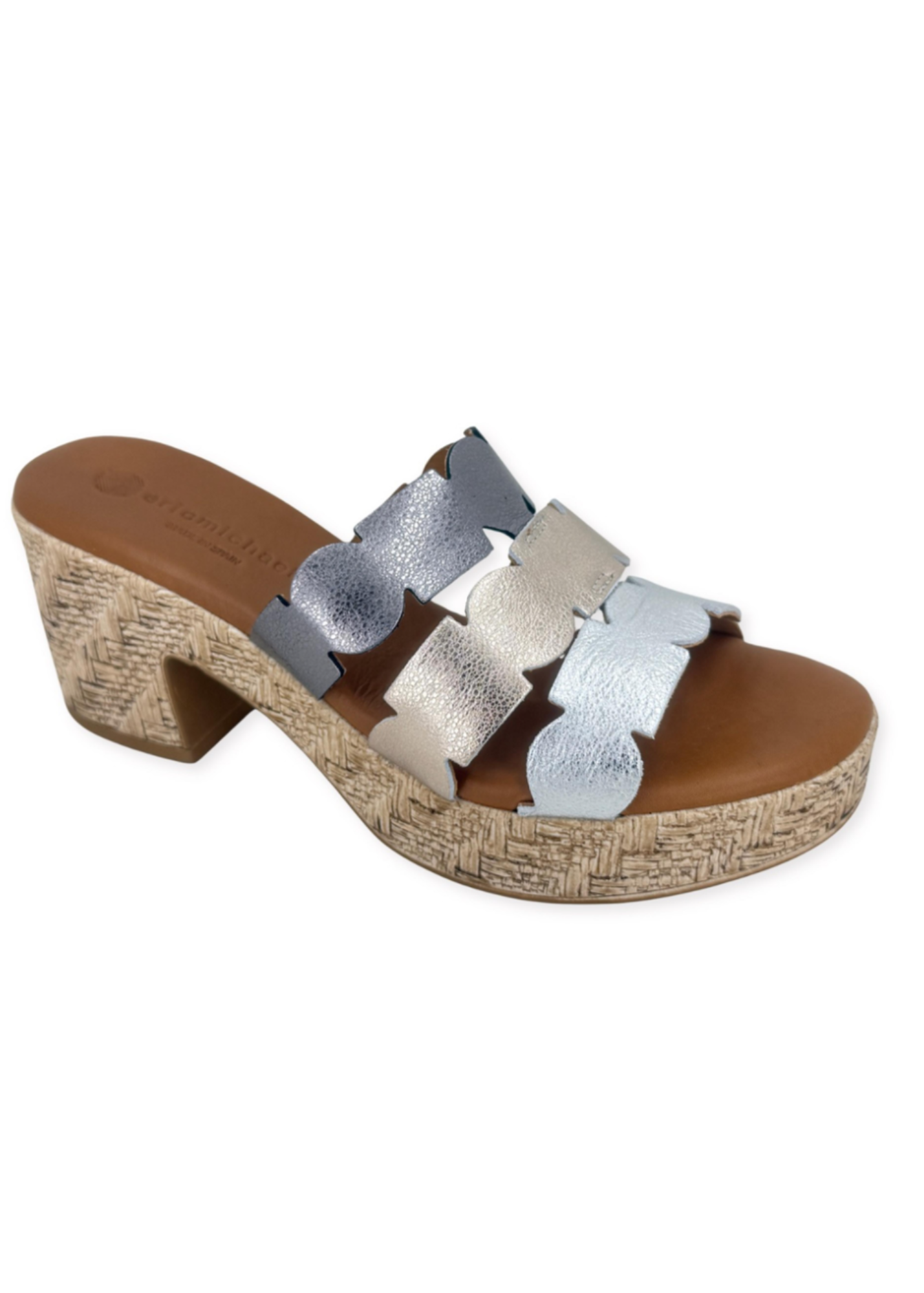 The Minka by Eric Michael offers a playful twist on a best-selling silhouette. Three sculpted suede straps in vibrant shades of orange, yellow, and taupe create a bold color-blocked effect with a soft touch.