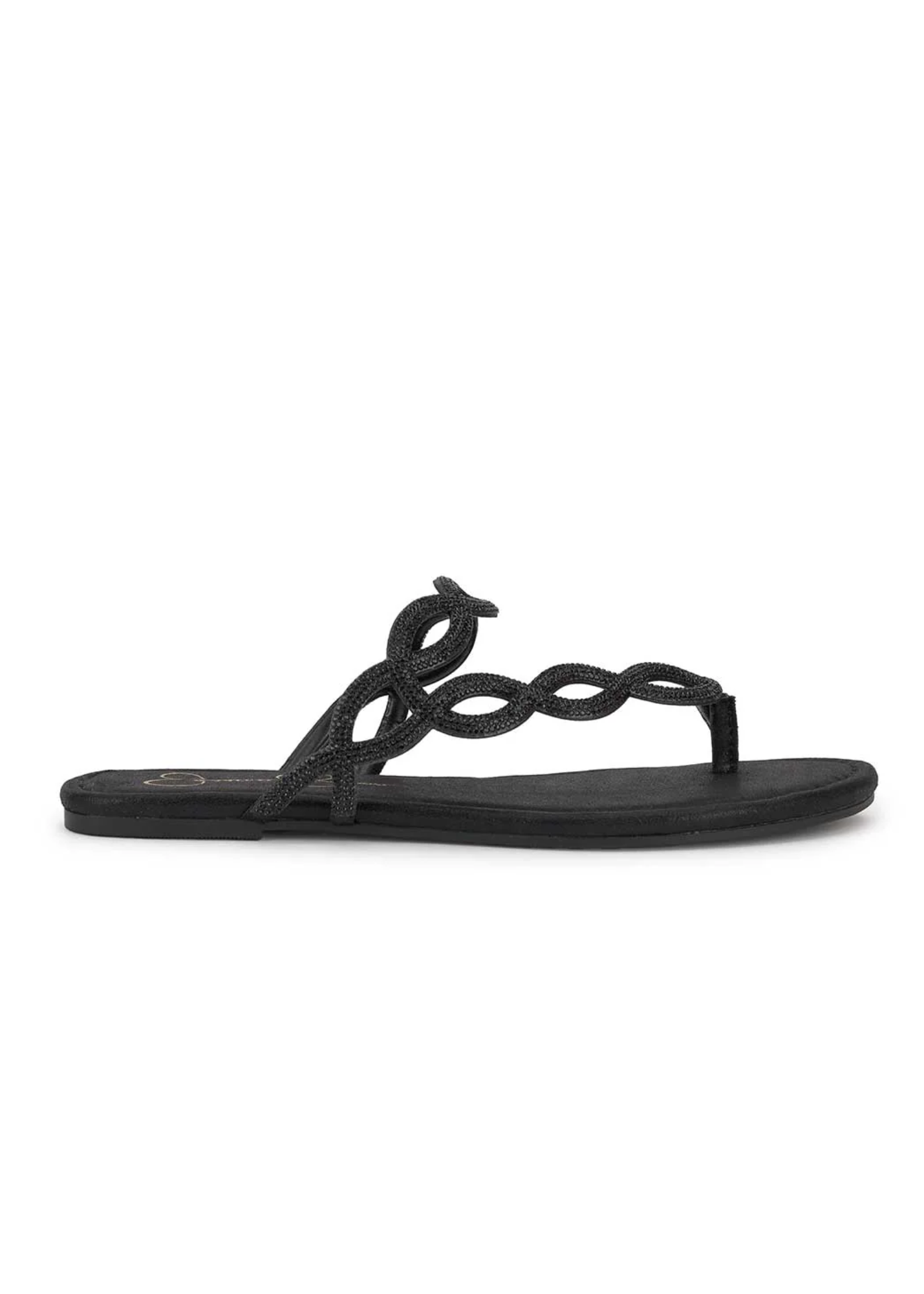 A chic flat sandal with a sleek sole and a playful braided strap that twists across the foot. Easy, stylish, and perfect for slipping on and going wherever the day takes you