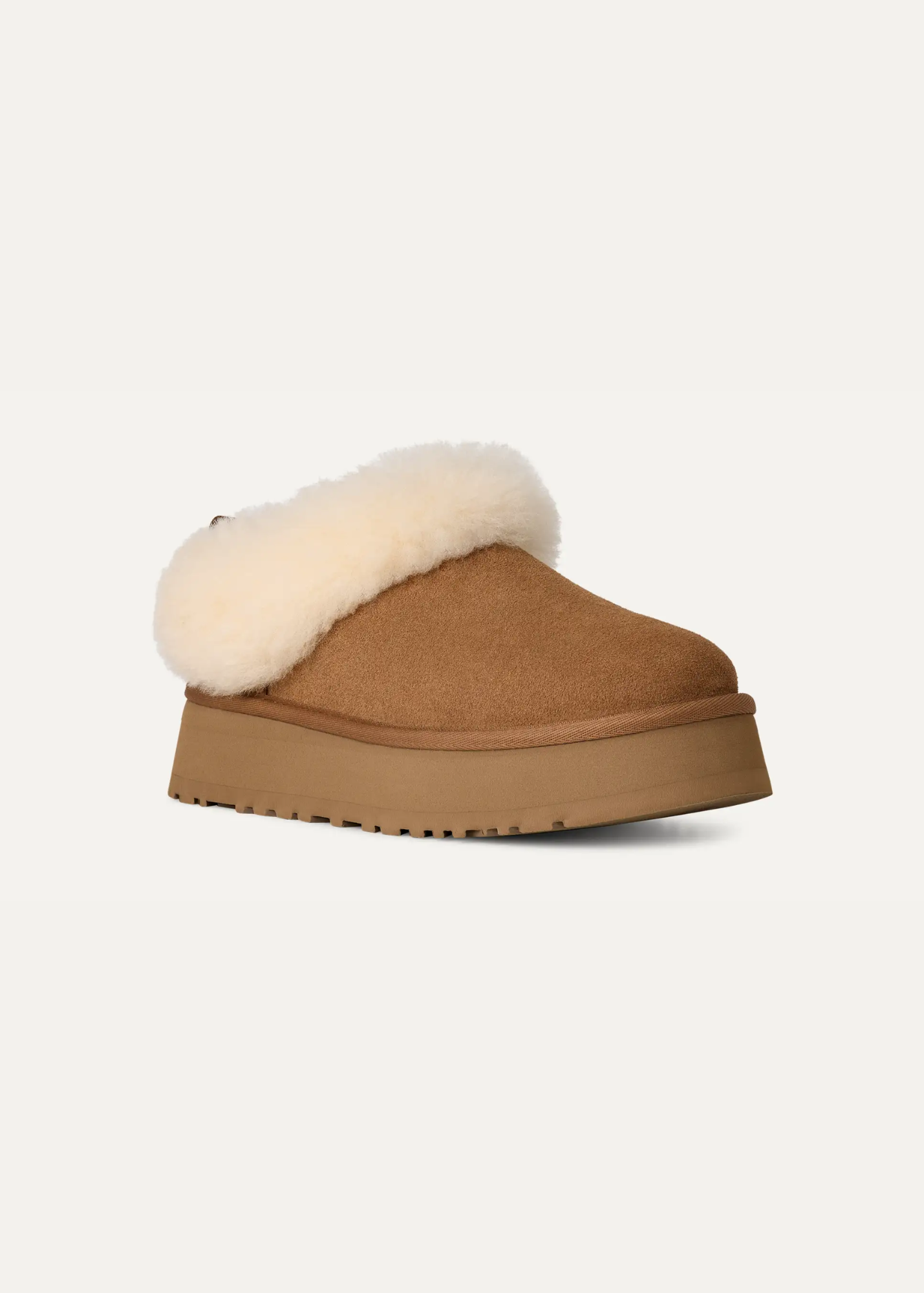 Love the Tazz but want even more UGG® coziness? Our Tazzelle is the one for you. This ultra-plush indoor-outdoor slipper features genuine suede and a lightweight 1.75" platform made from springy sugarcane EVA. Sheepskin lines the interior and continues onto the lush fixed cuff, so you can wear these with socks, or without.