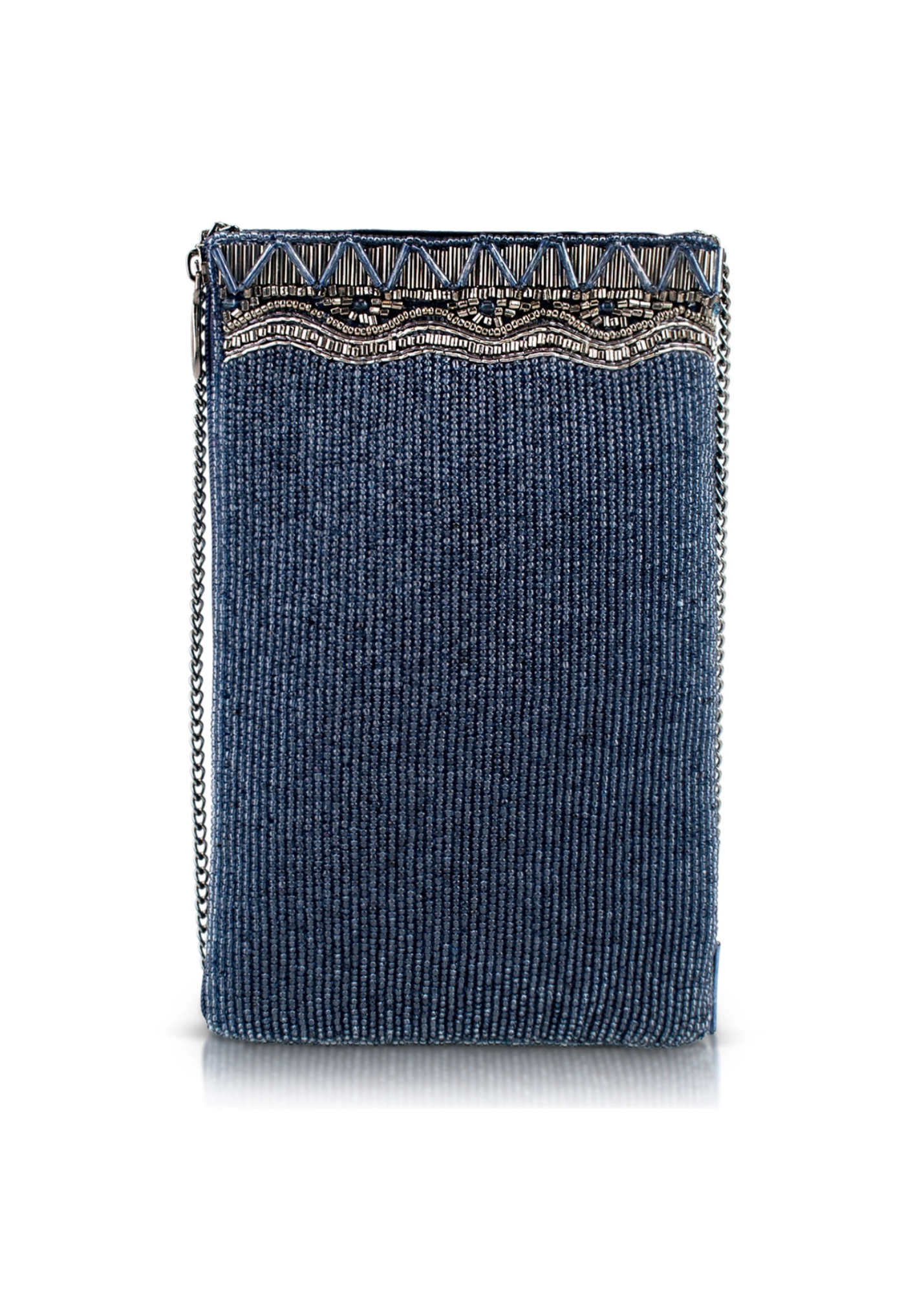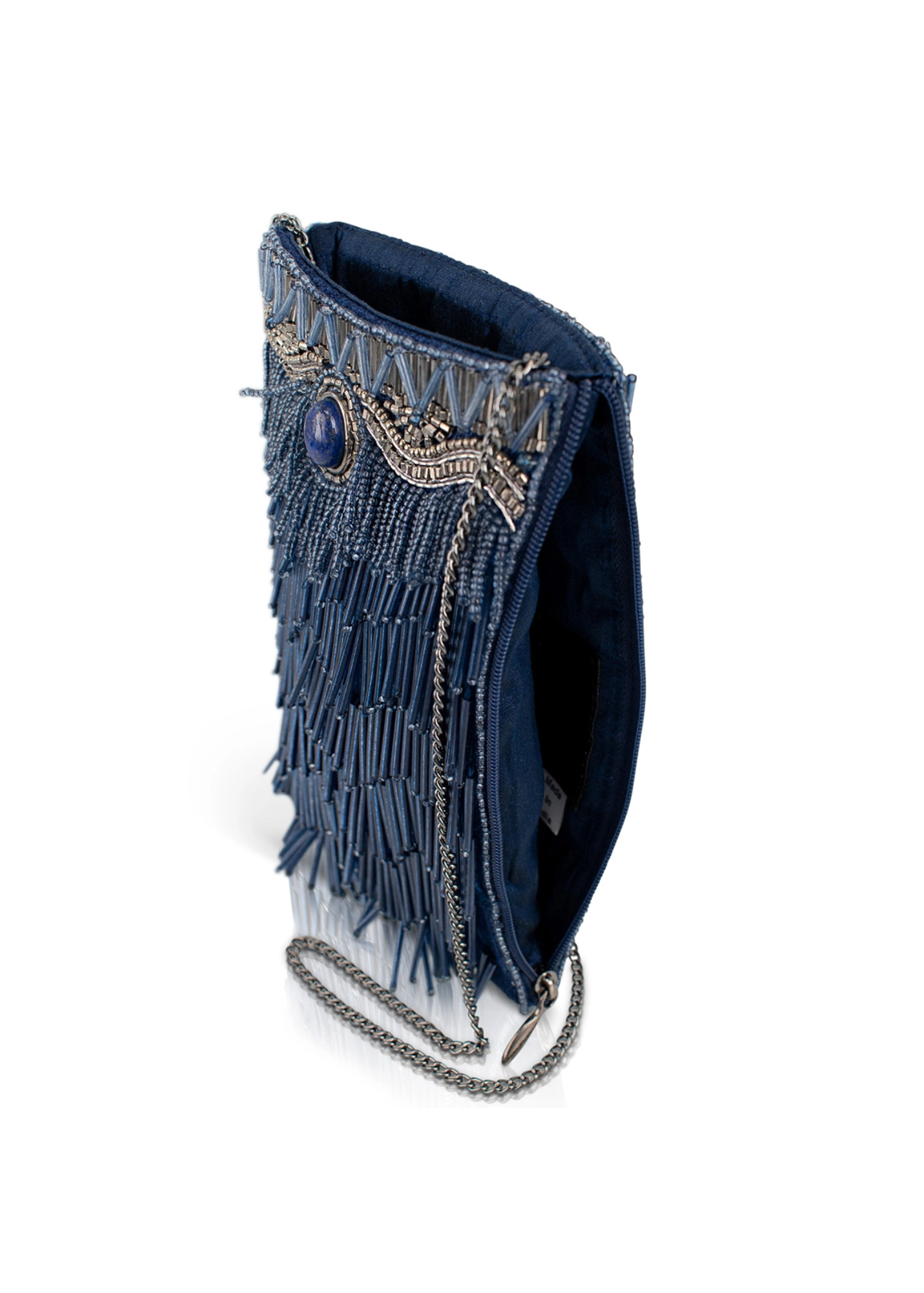 Make a bold statement with layers of deep blue fringe, sparkling beadwork, and a touch of vintage glam. Small in size, big on style True Blue purse is your perfect night-out companion.