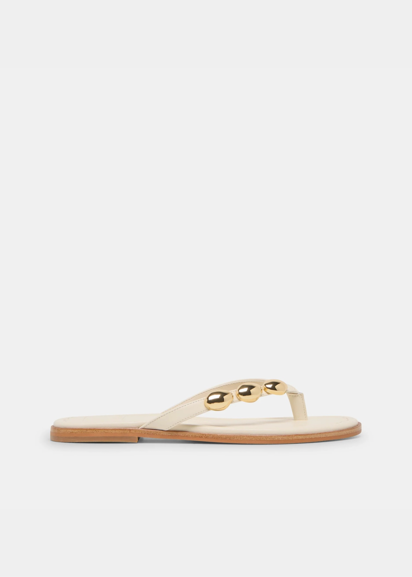 JUNY refines and elevates the classic flip-flop silhouette with clean lines and sophisticated metallic detailing. Available in teak suede, black leather, and off‑white leather colorways, this style delivers a versatile mix of texture and tones for effortless warm weather dressing. This minimalist style is easy and carefree with shining gold metal embellishment that adds just a hint of modern edge. Wear this sustainably-crafted, go‑anywhere staple with everyday outfits like laid-back linen separates, relaxed denim, and casual daytime dresses.