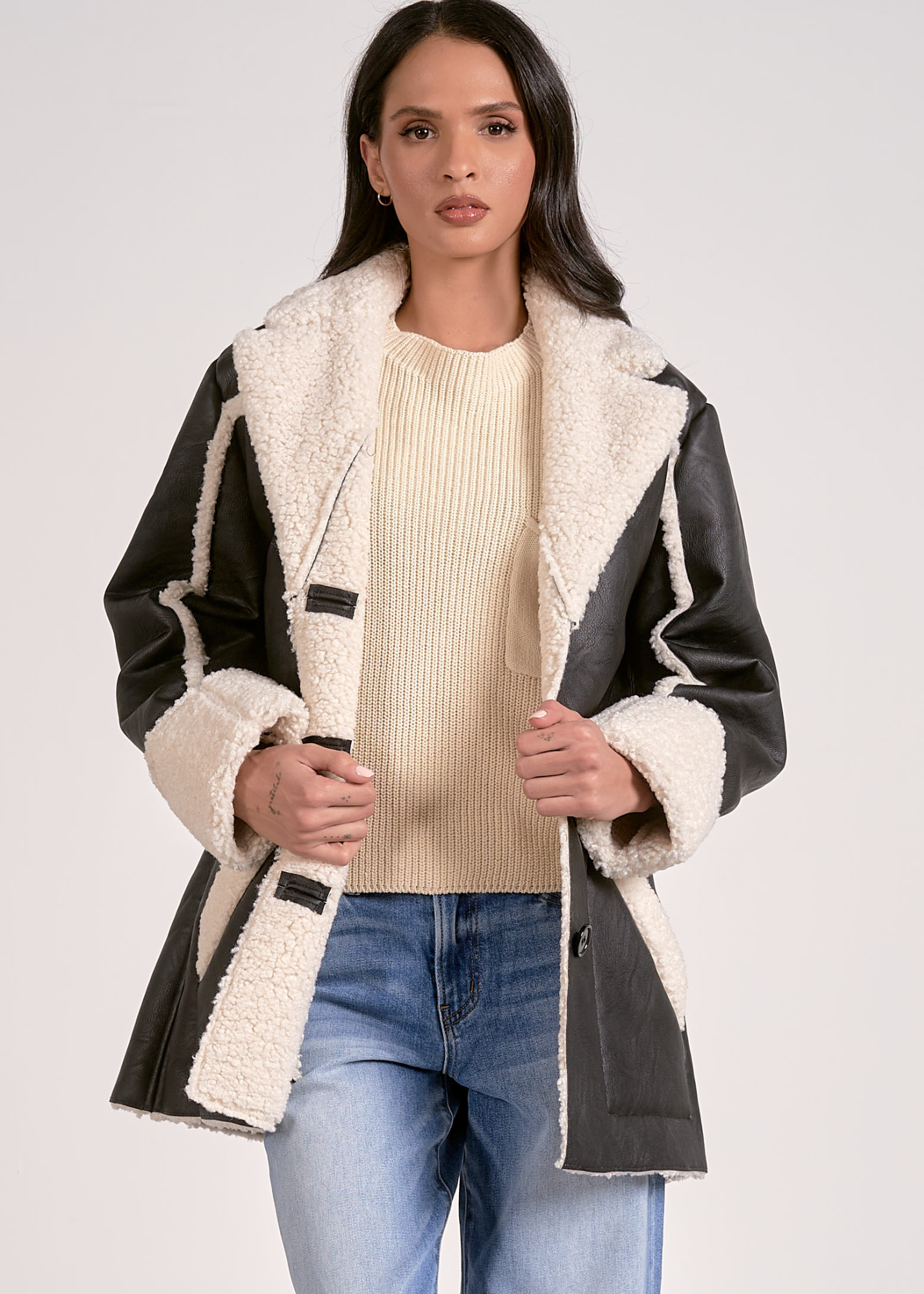 Elan Shearling & Faux Leather Jacket
