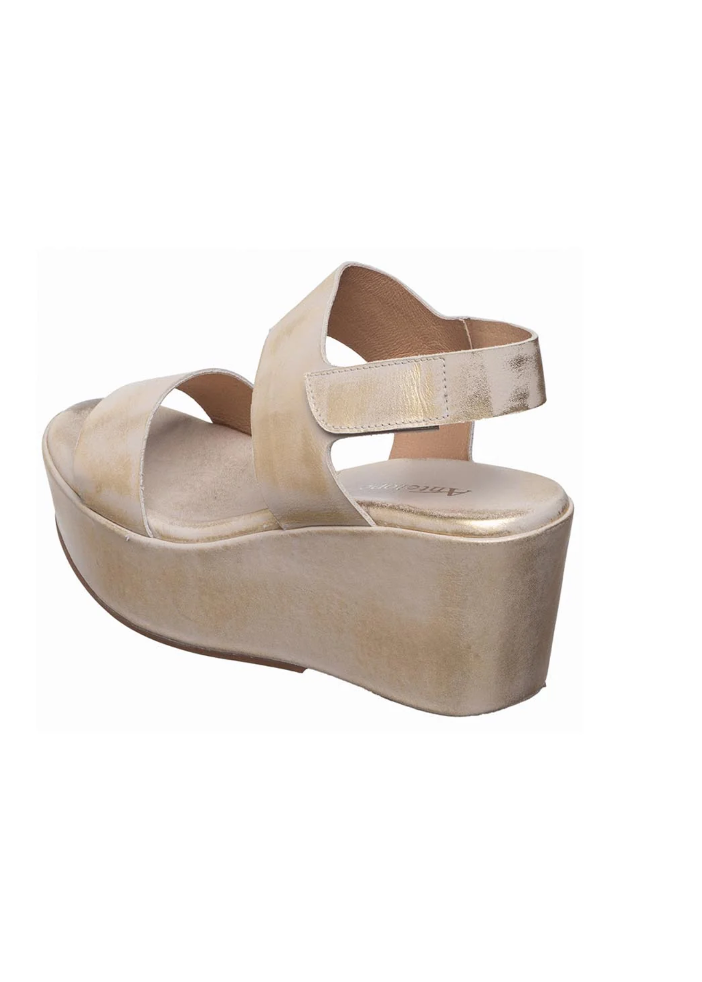 The H69 Jill womens metallic platform wedge sandals ankle strap comfort style pairs a fine quality leather upper in a natural metallic finish with a secure ankle closure for confident, all-day wear. Standing at a 2.5 inch heel height, this open-upper silhouette embraces simplicity at heart — a winning combination of materials, cut, and sole joining harmoniously. Handcrafted with a latex cushioned insole coated in smooth breathable leather, the elevated wedge moves effortlessly from daytime errands to evening plans without sacrificing support or comfort every step of the way.