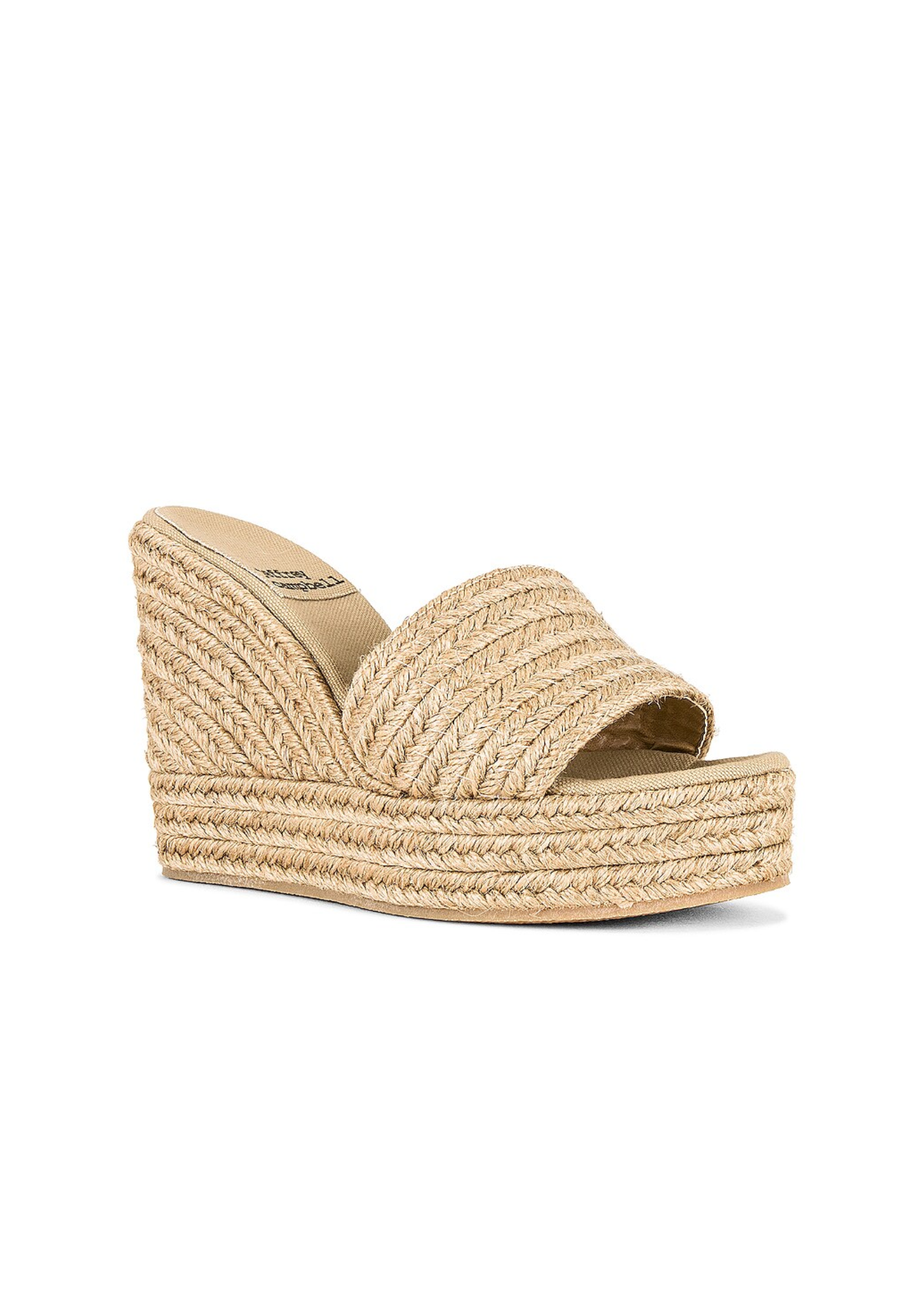 - Raffia upper with rubber sole.