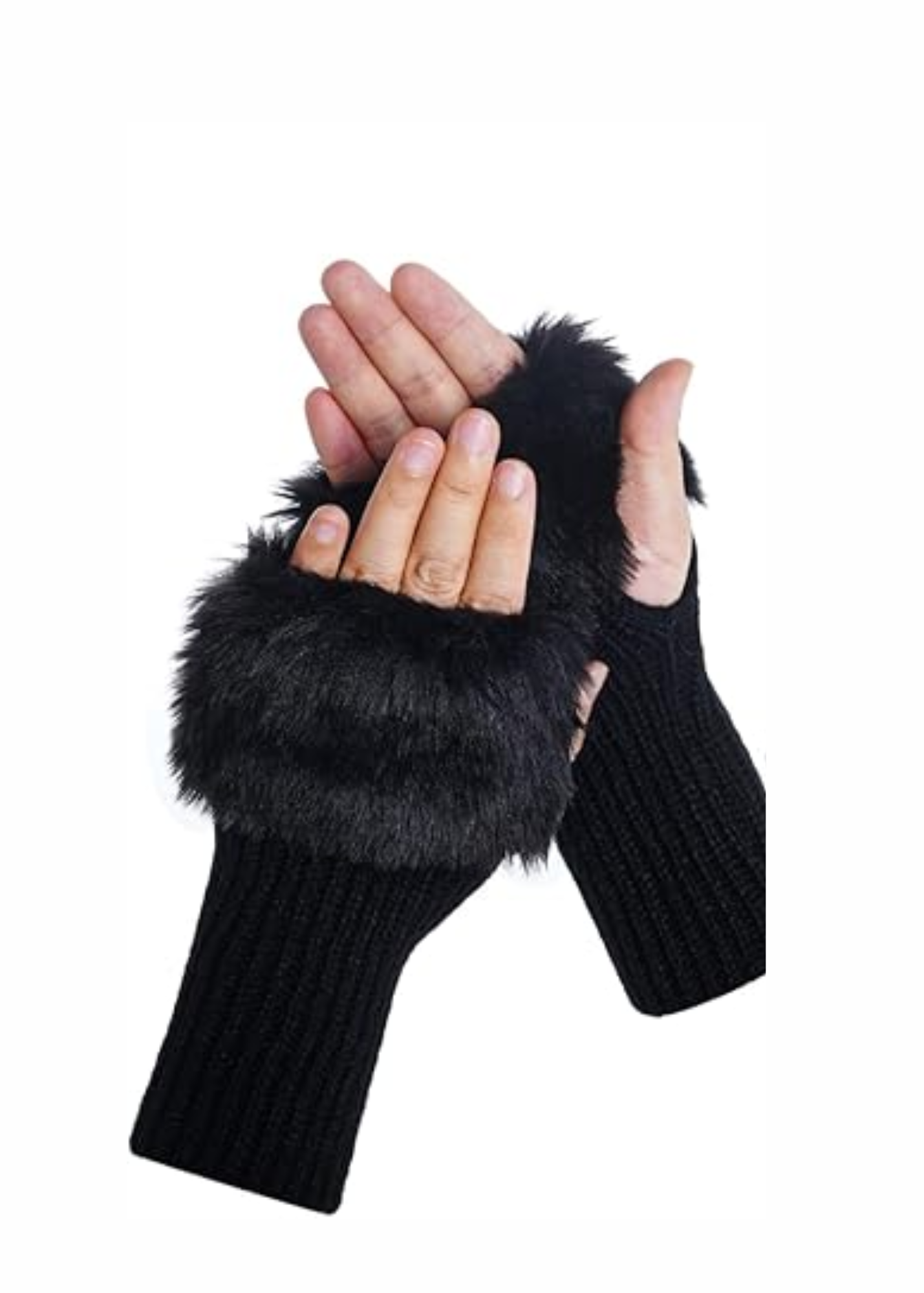 Soft, stretchy faux fur fingerless warmers made from high-quality acrylic for warmth and all-day comfort. Skin-friendly and flexible, they fit comfortably while allowing free finger movement for typing, driving, and touchscreen use. The fingerless design keeps hands warm while showing off your manicure. Versatile and stylish, they pair easily with casual or dressy outfits and are ideal for everyday wear, outdoor activities, travel, and cold-weather outings. Suitable for late fall through early winter.