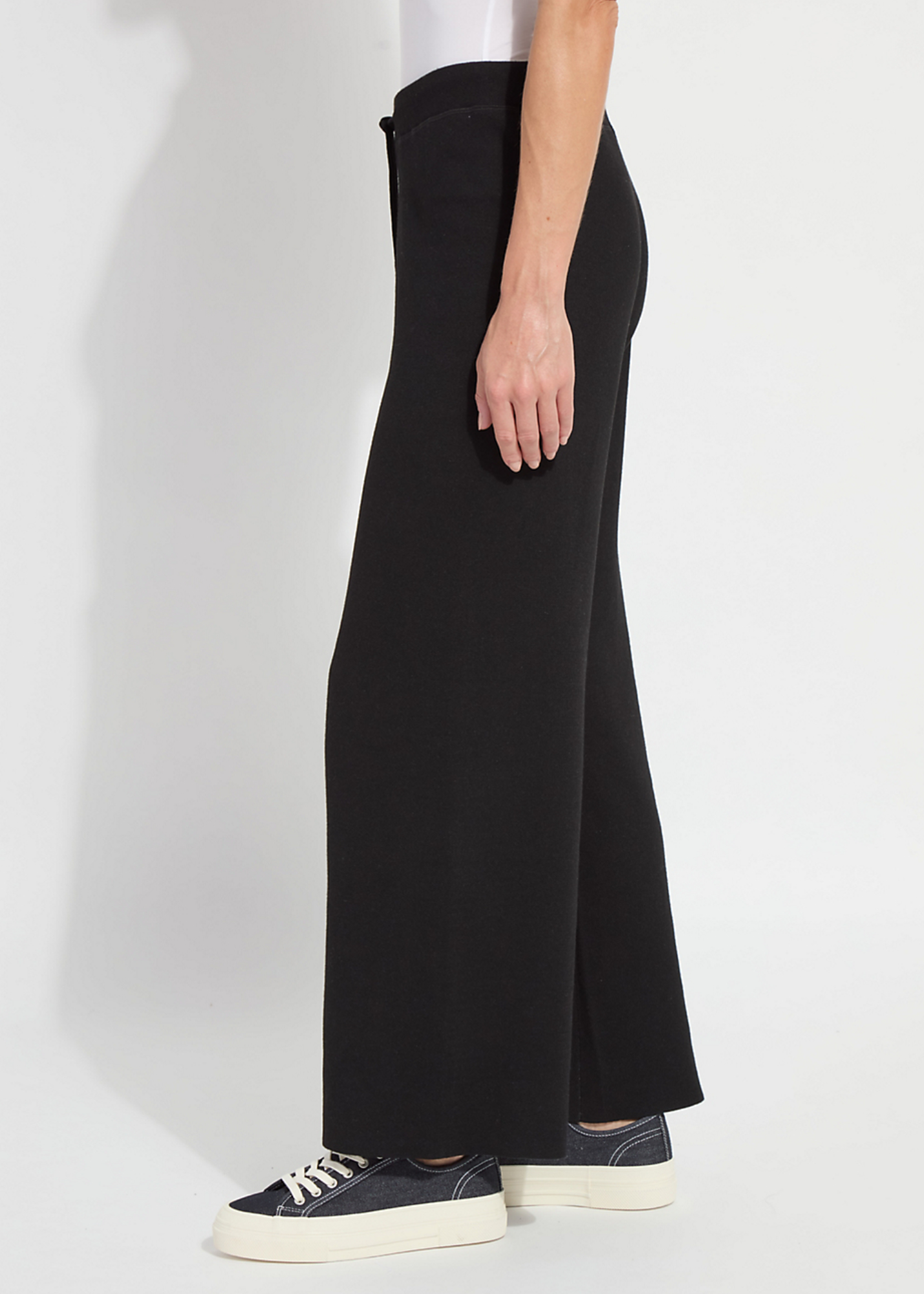 Made from washable Light Weight Double Face Cashmere, the Odessa REVERSIBLE Knit Lounge Wide Leg offers pull-on comfort, an elastic waist with drawstring and no side seam. These super cozy lounge pants are Black on one side and Pearl Grey Mélange on the other. Perfect for travel or loungewear, they style beautifully with the Odessa REVERSIBLE Knit Short Sleeve Tee. Machine wash and air dry. Store folded, never hung.