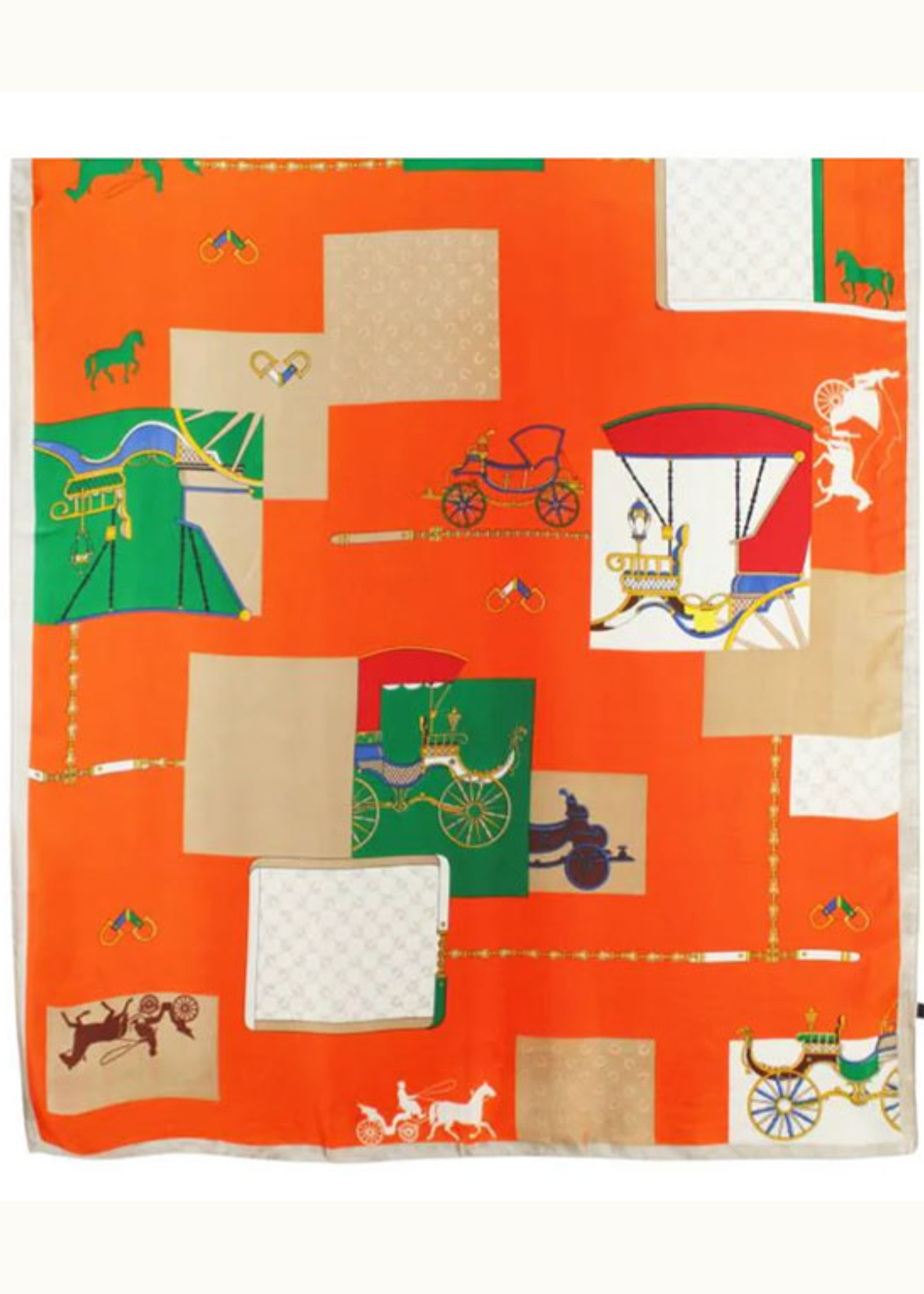 Size : 35" X 78" Material : 70% Viscose, 30% Silk Breathable, Lightweight, Skin-friendly and Soft Timeless scarf with a striking carriage-themed design, ideal for adding elegance to your wardrobe. Can be styled as a neck wrap, shawl, or accessory accent. This versatile piece enhances both everyday and dressy looks with its detailed artwork and refined aesthetic.
