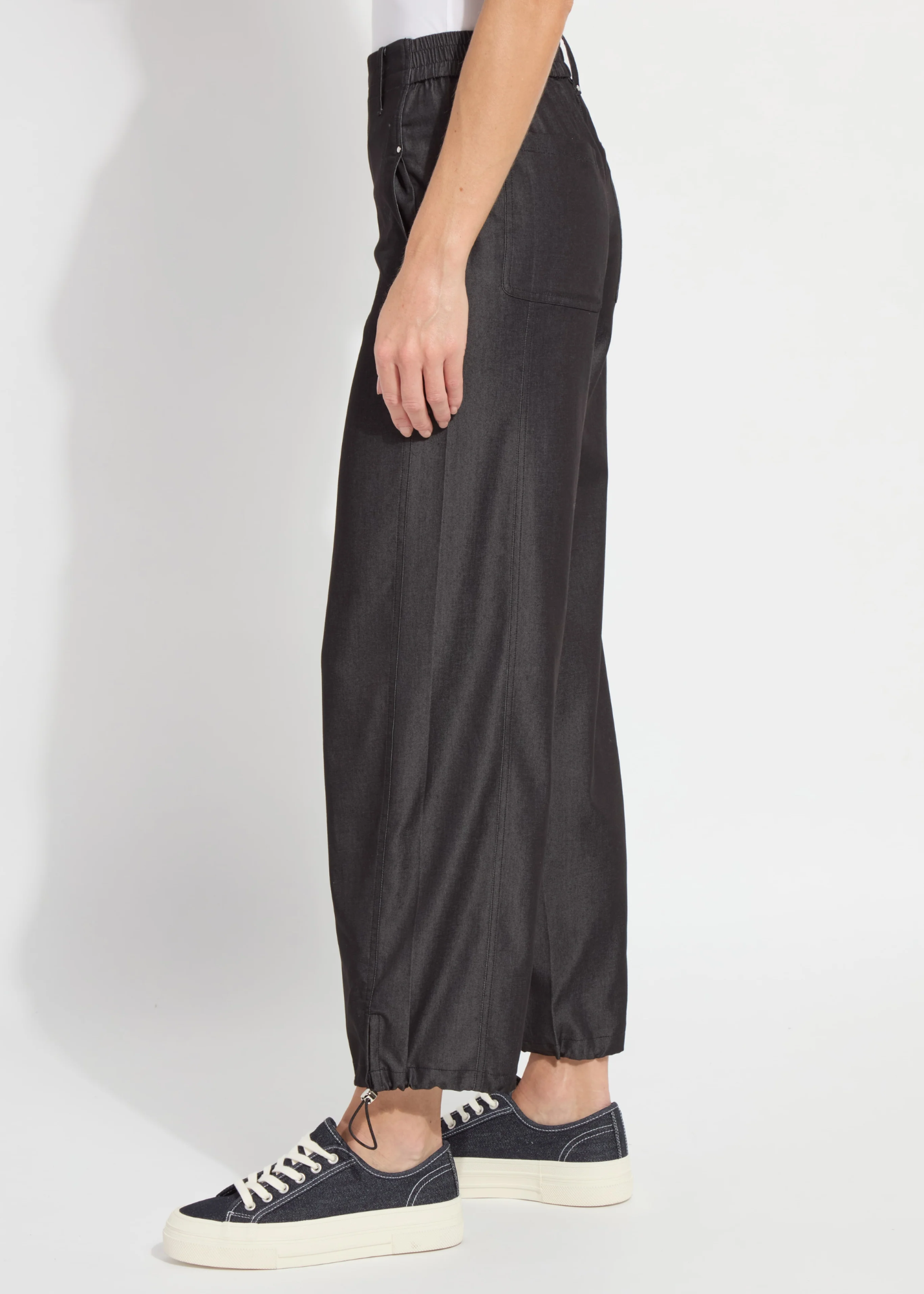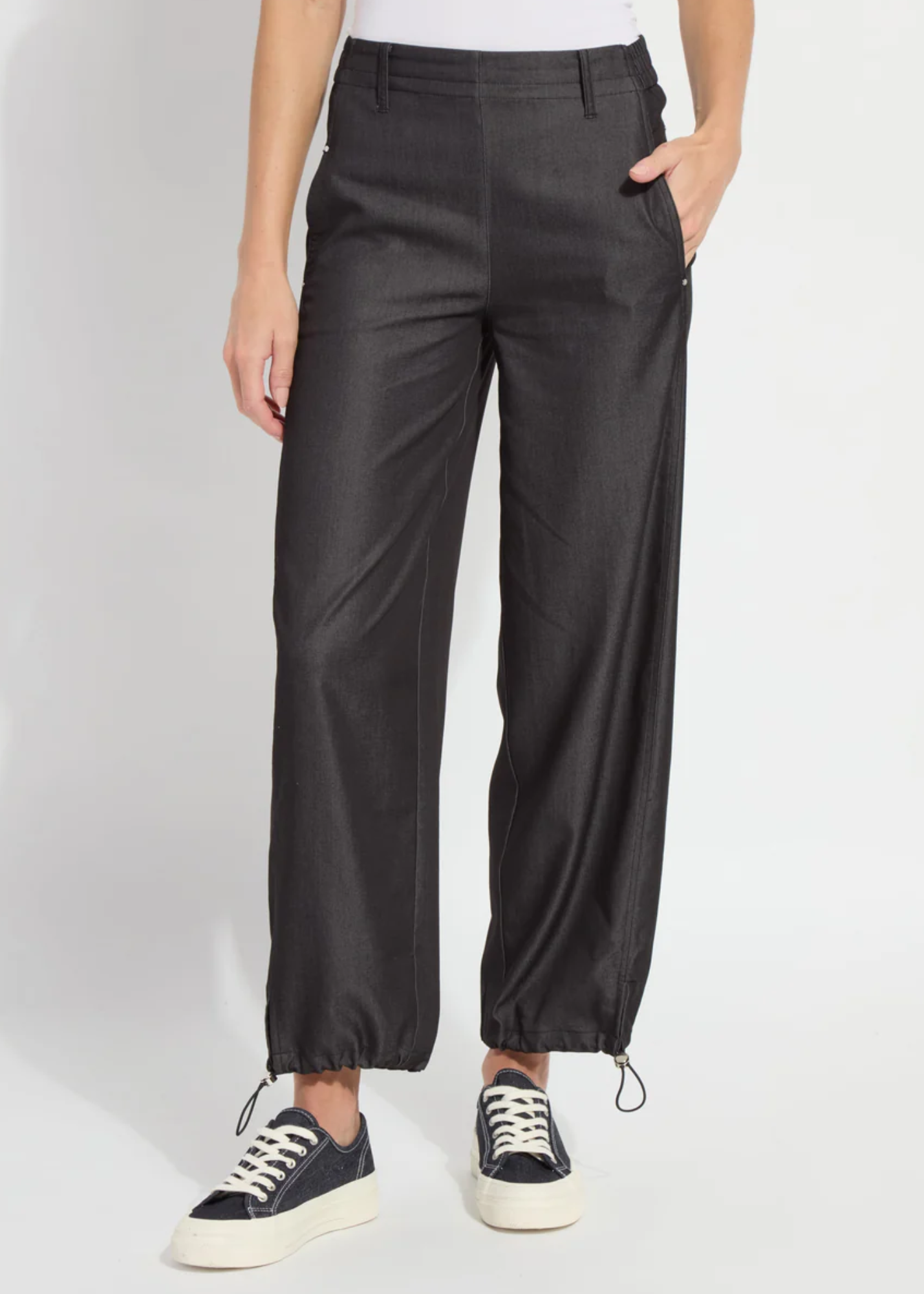 Luxe Lenzing Fluid Stretch Satin meets casual styling in the Stevie Tailored Jogger. The Stevie Tailored Jogger offers functional side pockets with mesh lining, back patch pockets, a flat front, elasticated back waistband and elasticated hem.These joggers are made with an eco-friendly fabric containing LENZING™ EcoVero viscose fiber, which comes from certified renewable wood sourcesusing a production process that cuts water usage by 50 percent. Gently steam or iron to remove wrinkles.