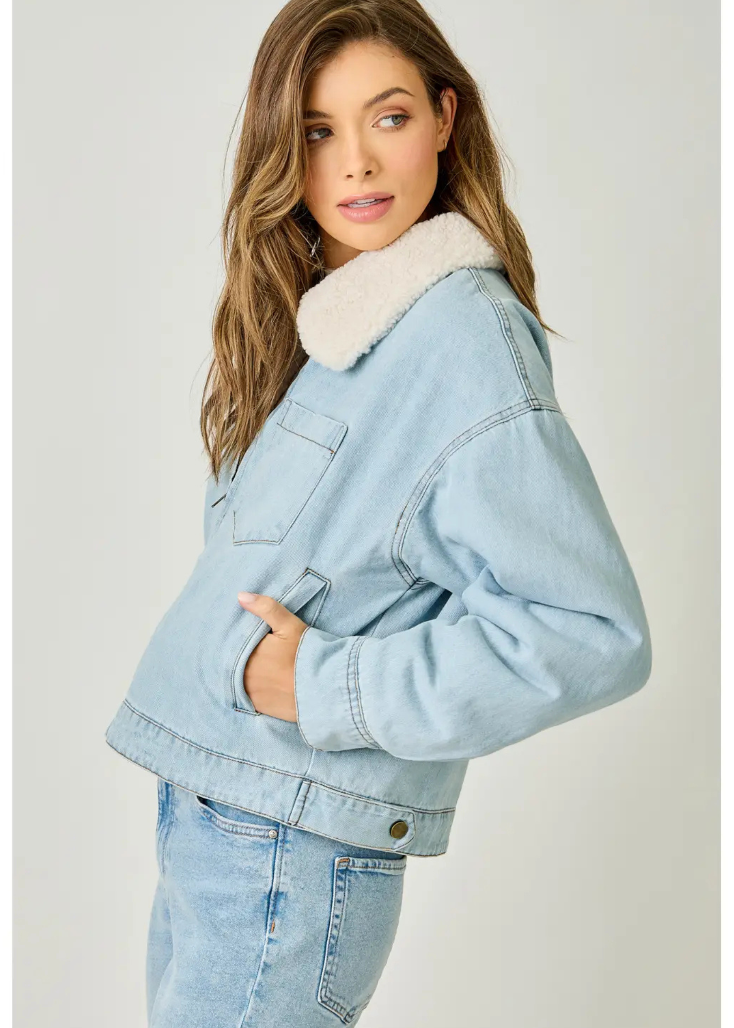 Front zipper closure Chest pocket and side pockets Buttoned sleeve cuffs Faux fur collar -Model wears: S / Model height: 5` 9"