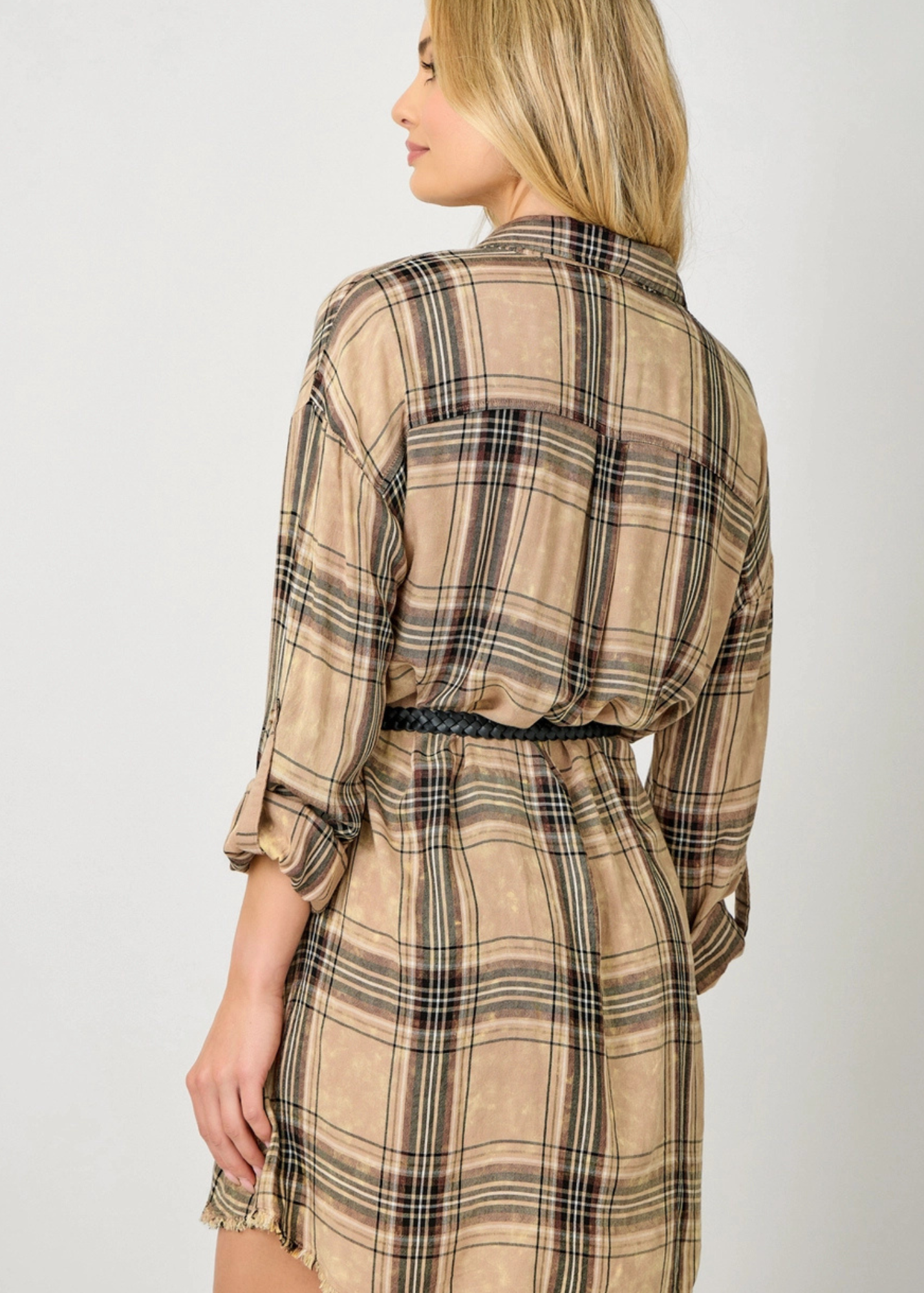 Button tab sleeves Fringed hem Hi-lo hem Button down Chest pockets -Model wears: S / Model height: 5` 8"