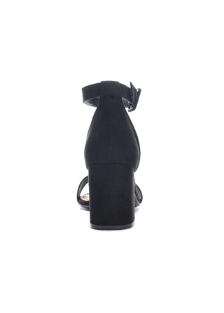 Feminine and flirty, the Jolly Sandal is a heel that will sparkle almost as much as you do. In supple faux suede, with a rhinestone embellished open-toe vamp, sturdy block heel, delicate ankle strap, and cushioned footbed, this dress sandal brings the party wherever it goes.
